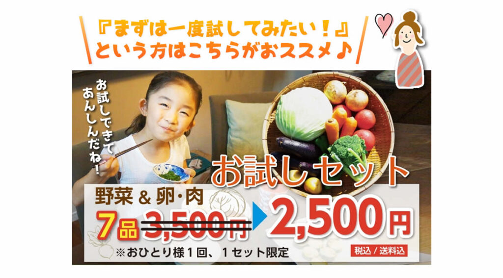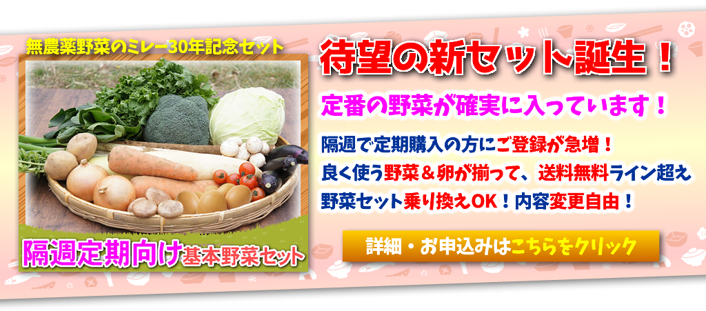 【PR】無農薬野菜のミレー —旬の野菜を手軽に取り入れたいあなたへ—生産者が心を込めて育てた野菜を、採れたてのまま届けてくれる産直サービスを紹介します。農薬の使用を控えた畑で育った野菜を中心に、季節ごとの味わいを楽しめます。セット内容はWebでいつでも変更OK。加工品や調味料も素材にこだわったラインナップです。料理が好きな方、家族の健康を気遣う方、野菜本来の味を楽しみたい方におすすめです。 詳細はこちらをクリック 季節の野菜と果物盛りだくさんセット(3~5名様向け) 季節の野菜と果物14~16種類程度4,000円~5,000円前後(税込・送料別)普段使いの野菜に加えて少しユニークな野菜や季節の果物まで、旬の恵みをたっぷりとお届けいたします。※収穫の状況により、セットに果物が入らない週もございます。 季節の野菜セット(1~3名様向け) 季節の野菜12~14種類程度3,000円~4,000円前後(税込・送料別)普段使いの野菜を中心にまとめました。足りない野菜や果物がありましたら、お好きなものを追加してお楽しみください。 隔週定期向け基本野菜セット 隔週ペースでも使いやすいように“基本野菜だけ”を揃えたセットもございます。 まずは気軽に「お試しセット」から! 商材名 無農薬野菜のミレー運営者 Y.T.※当サイトはアフィリエイトプログラムを利用し宣伝目的で作成しております。