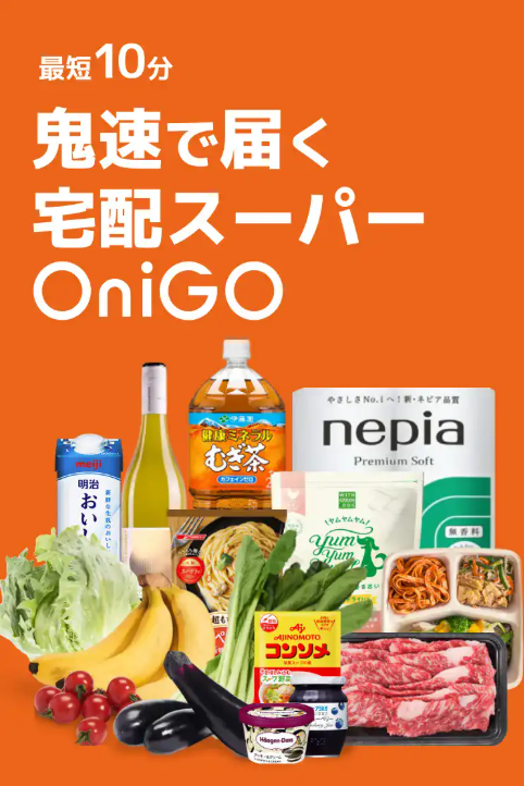 【PR】OniGO \忙しい日の“時間の味方”に/食品・日用品をスマホからすぐ注文できる宅配サービスをご紹介します。最短10分で届くスピード配送に対応し、食料品・飲み物・日用品・お酒など、毎日使うアイテムをアプリから簡単に注文できます。子育て中の方、在宅ワーク中の方、買い物に行く時間が取りづらい方にとても便利なサービスです。 詳細はこちらをクリック ご利用方法 1. アプリ(またはWEB)にアクセス2. 住所と電話番号を登録3. 商品をカートに追加4. 購入手続きをして決済5. 商品を受け取る 配達エリア