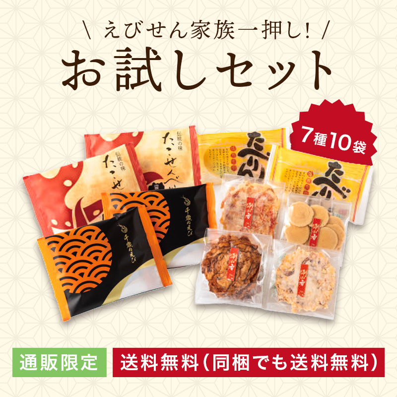 【PR】えびせん家族 海鮮せんべいの通販サイトのご紹介です。“えびせんべい”や“たこせんべい”など、幅広い商品がそろっており、手土産や日常のおやつにぴったりな一品を探している方におすすめです。 詳細はこちらをクリック おすすめ商品 舟祭り8袋 1,296円(税込) 「食べられる海鮮せんべいトレー」に9種のおせんべいを乗っています。海老の風味を中心に、多彩な味わいを一度に楽しめます。見た目もかわいく手土産にもぴったりです。 徳用たこせん 700円(税込) 焼きたての“たこせん醤油味”を、そのまま大容量パックに。毎月8の付く日だけの限定発送で、できたての香ばしさを楽しめます。たこ・いかの旨味と秘伝タレの深い味わいがクセになる一品です。 お試しセット 1,980円(税込) 人気のおせんべい7種を少量ずつ味わえる通販限定お試しセット。10袋入りで、まず試したい方に最適。まとめ買いなら送料もお得です。 商材名 えびせん家族運営者 Y.T.※当サイトはアフィリエイトプログラムを利用し宣伝目的で作成しております。